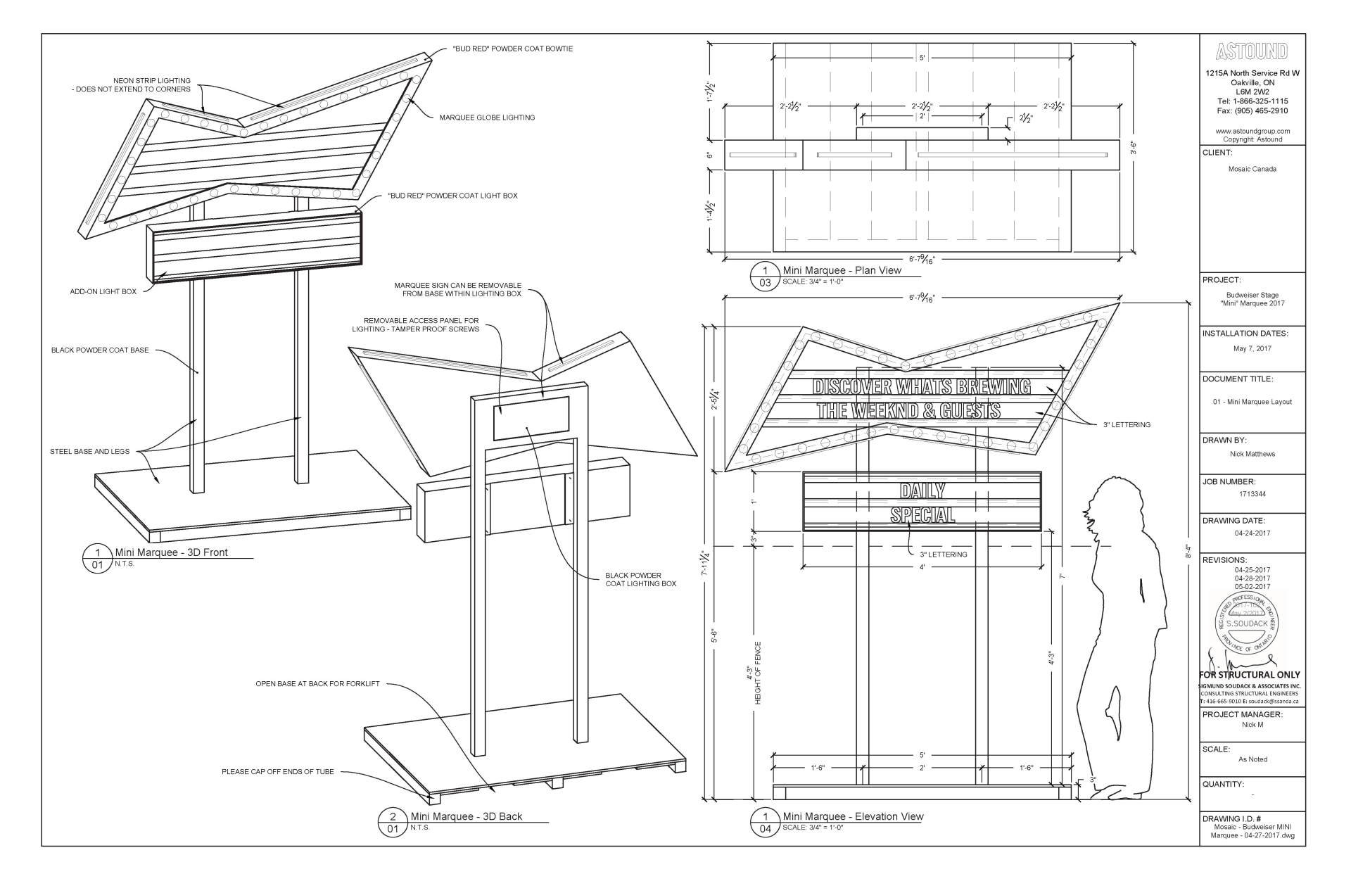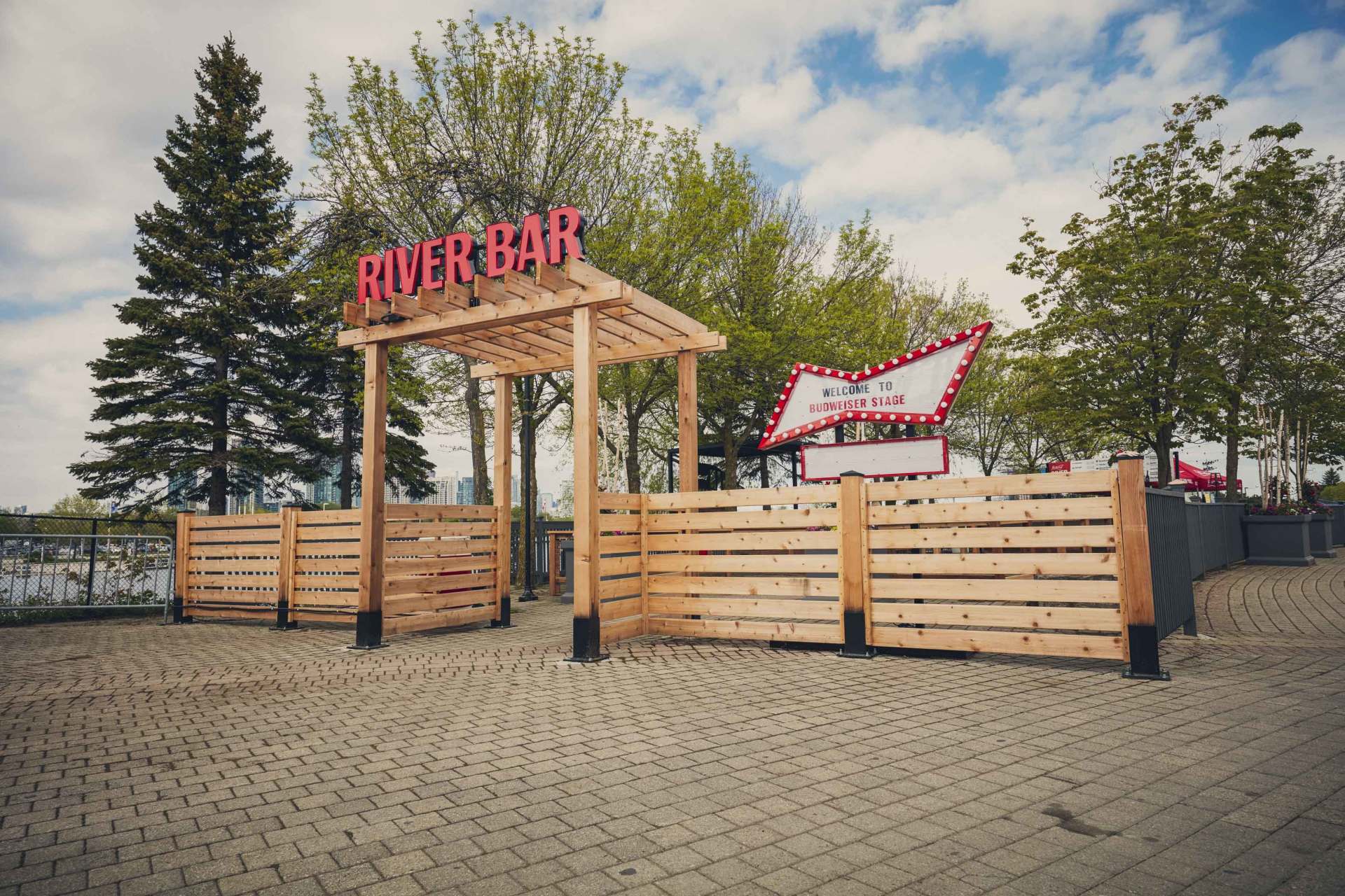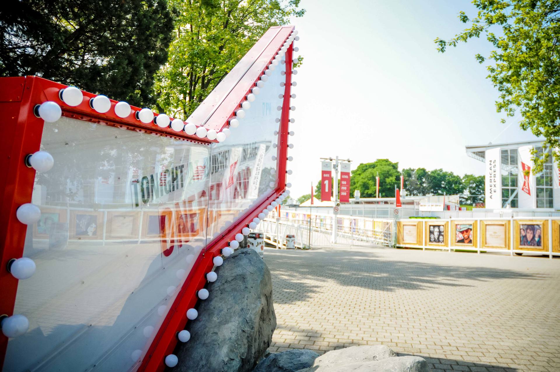 At night time, the illuminated marquee sign provides a beacon of light for concert-goers entering Ontario Place. Just past the main gates, visitors catch a glimpse of the marquee sign in the iconic bowtie shape of the Budweiser logo—which appears to have crash-landed from space conveniently in the middle of the pathway. The copy displayed on the sign is changed out for each different performance so that guests have a chance to take a photo or selfie of the cool sign announcing their fave performers.