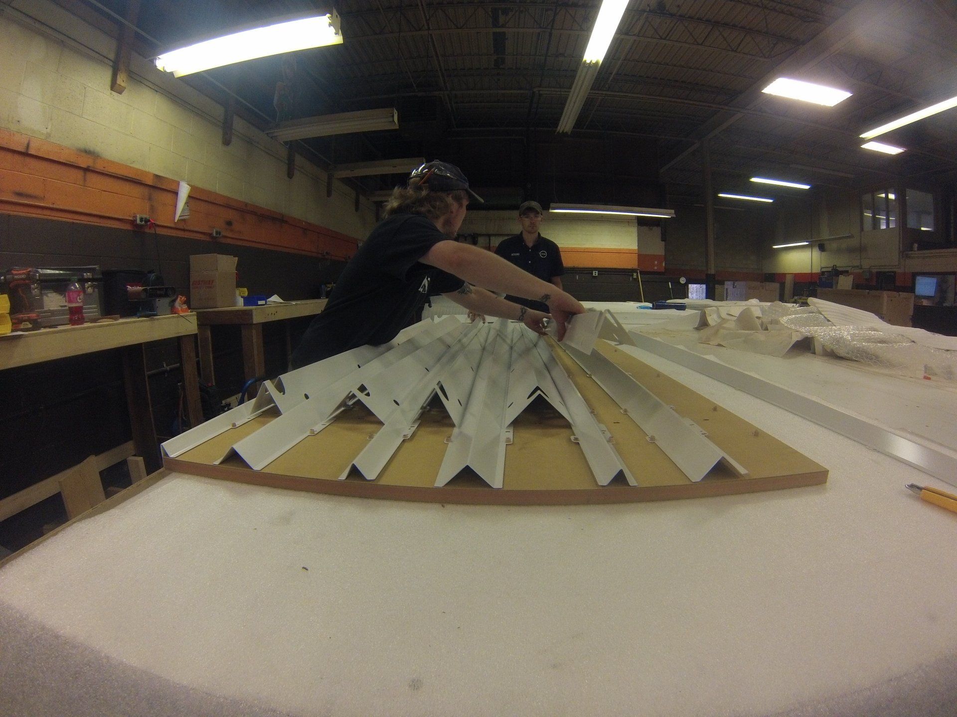 Lululemon partnered with Quadrangle Architects and contracted kraftwerk Group to facilitate the fabrication and installation of their brand new custom retail storefronts for stores across the Greater Toronto Area. The first store to receive a new treatment was the Eaton Center location, followed by the Mapleview store in Burlington, Ontario. The Mapleview store received 22 unique panels that featured sheet metal triangles folded to shape using advances press brake techniques. Each panel included a number of these custom triangles that can be easily dismantled individually for ease of maintenance and repairs.